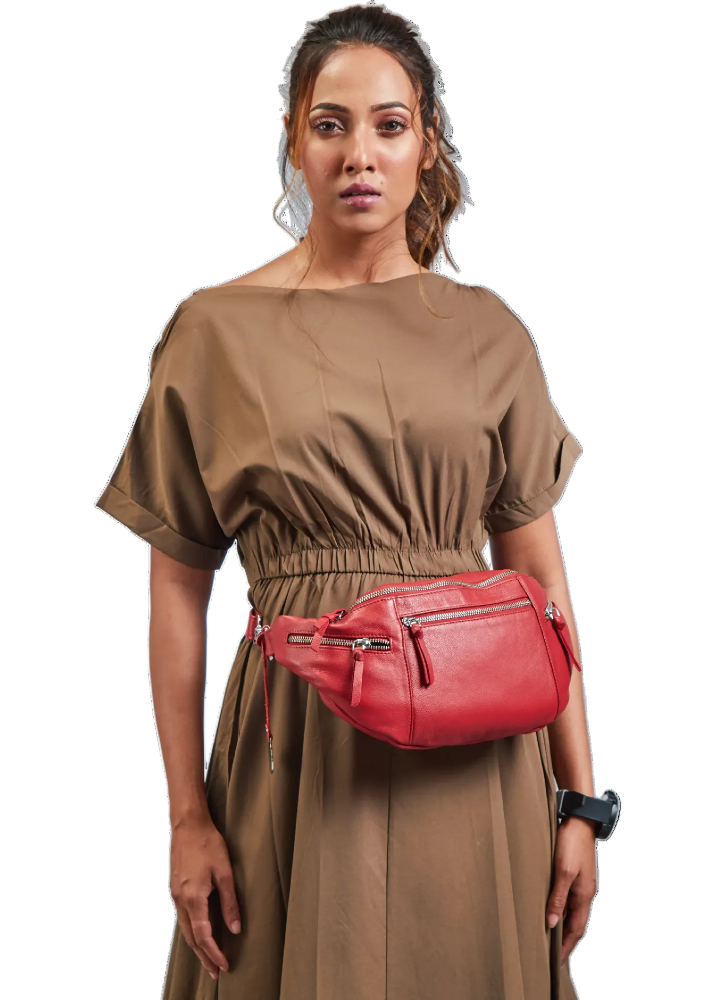 Style Frisco i suveræn mørkerød. Stor, trendy bumbag / bæltetaske med masser af rum og lommer i smukt kvalitetslæder