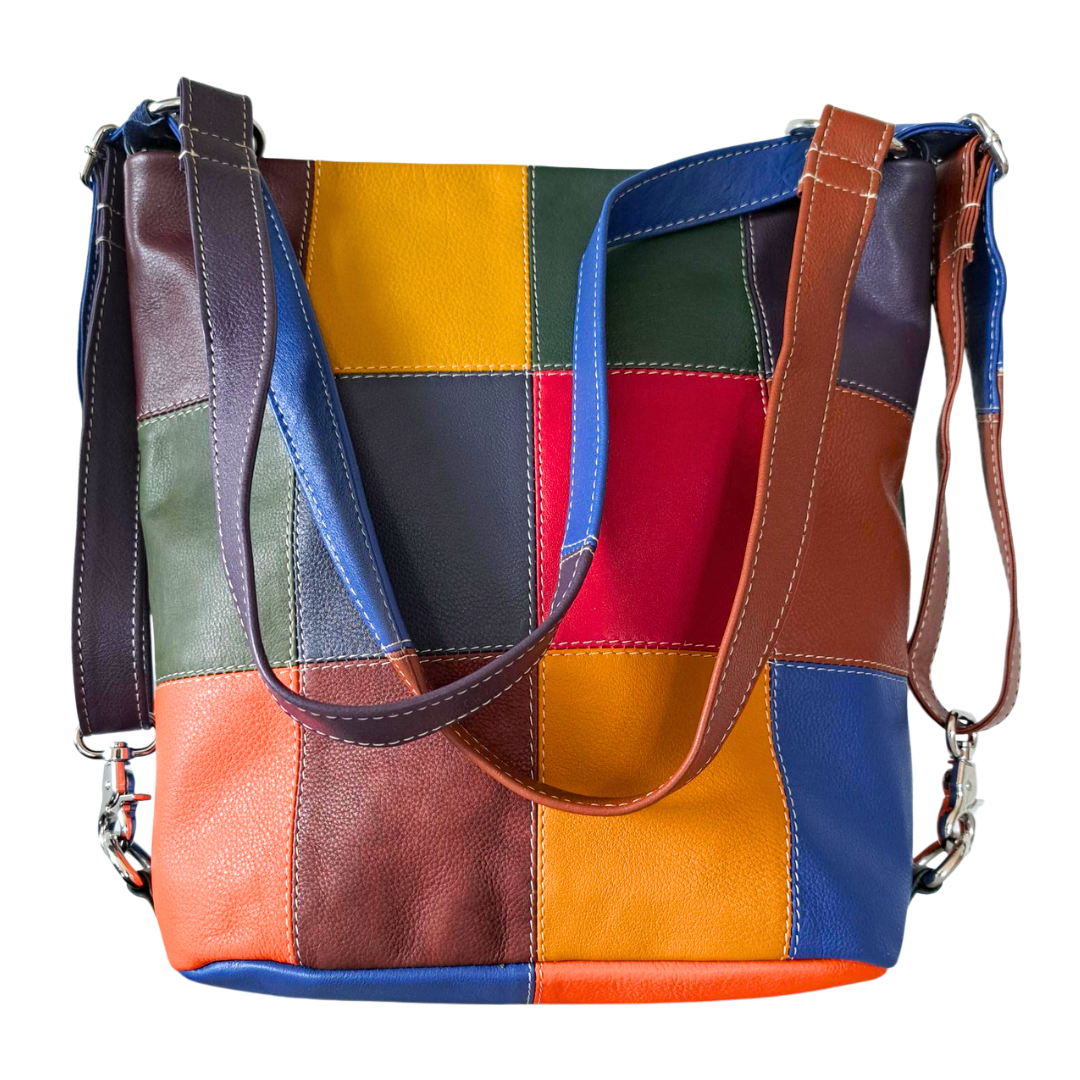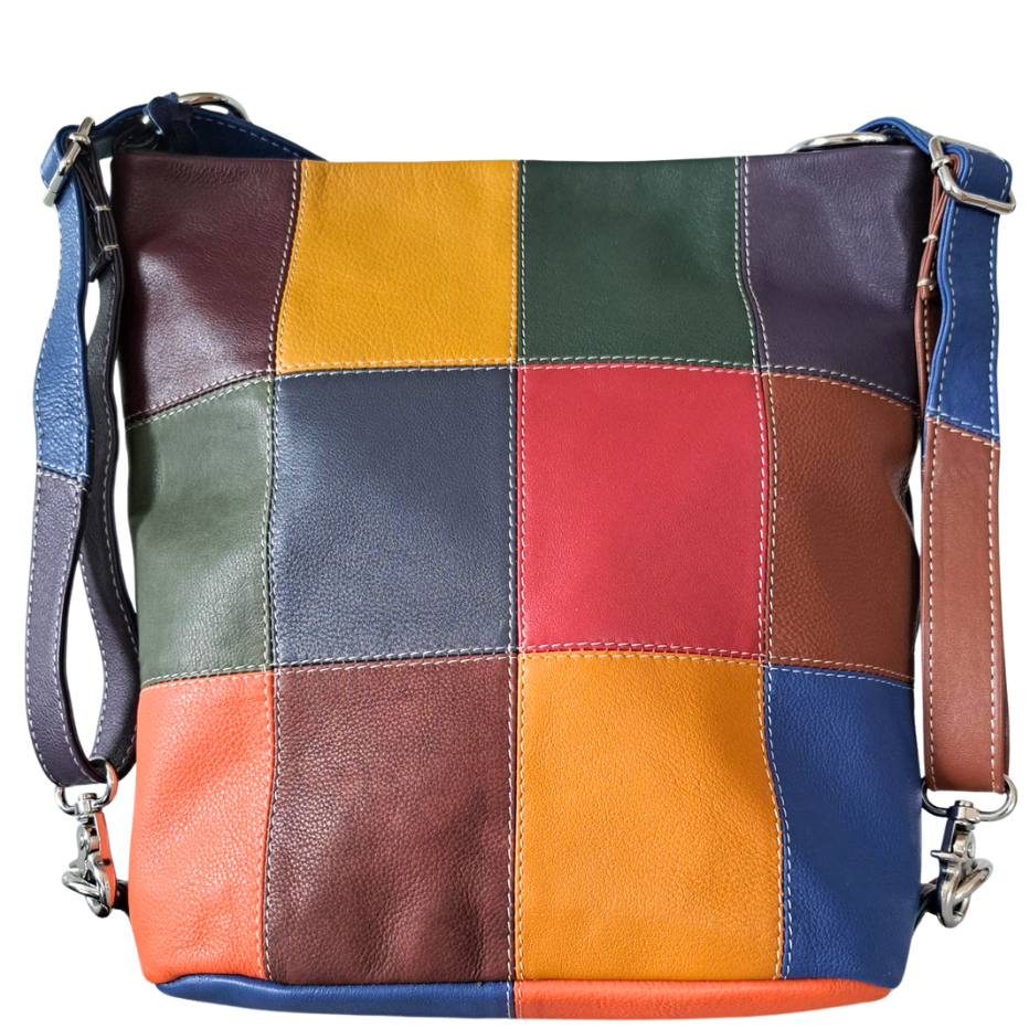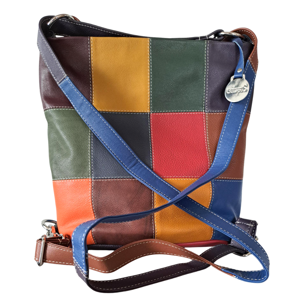 Style Qondus i smuk multifarve. Superfed kombineret rygsæk og skuldertaske kreeret af kvalitetslæder i 12 farver