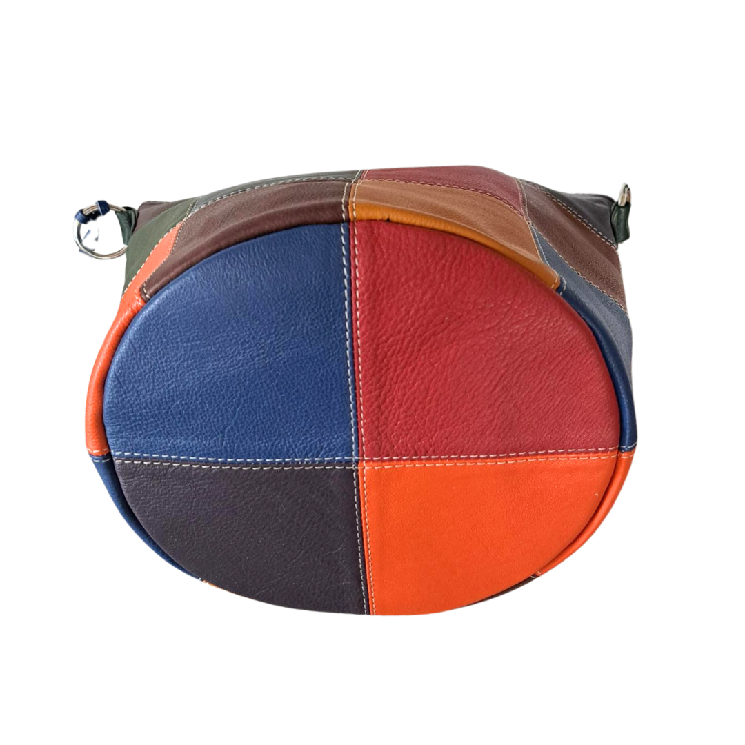 √ Style Olympia har en supersmuk cirkulær bund der består af kvadrater sammensyede af fire forskellige lædertyper i samme farver som tasken.