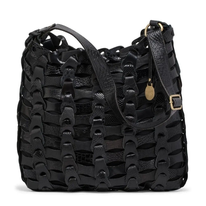 Style Elfa. Skøn skulder- crossbodytaske i håndflettet skind i sort/sølv