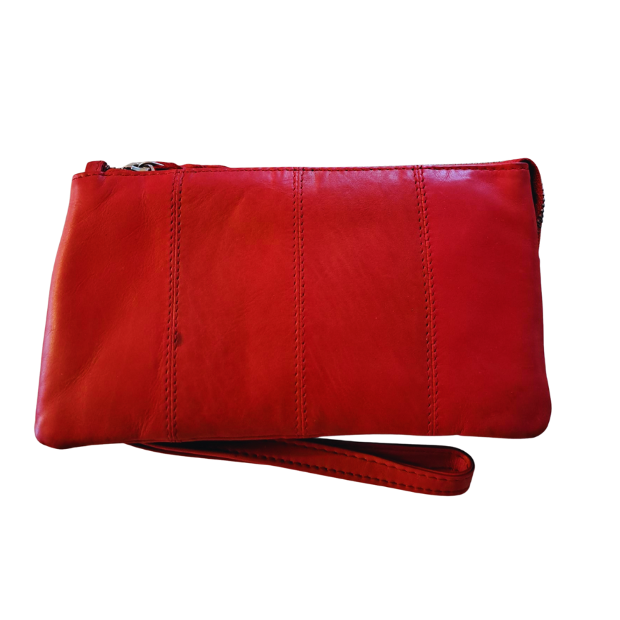 BEMÆRK: 2. sortering. Style Kangaroo i rød. Stor pung / clutch i læder med en fantastisk indretning