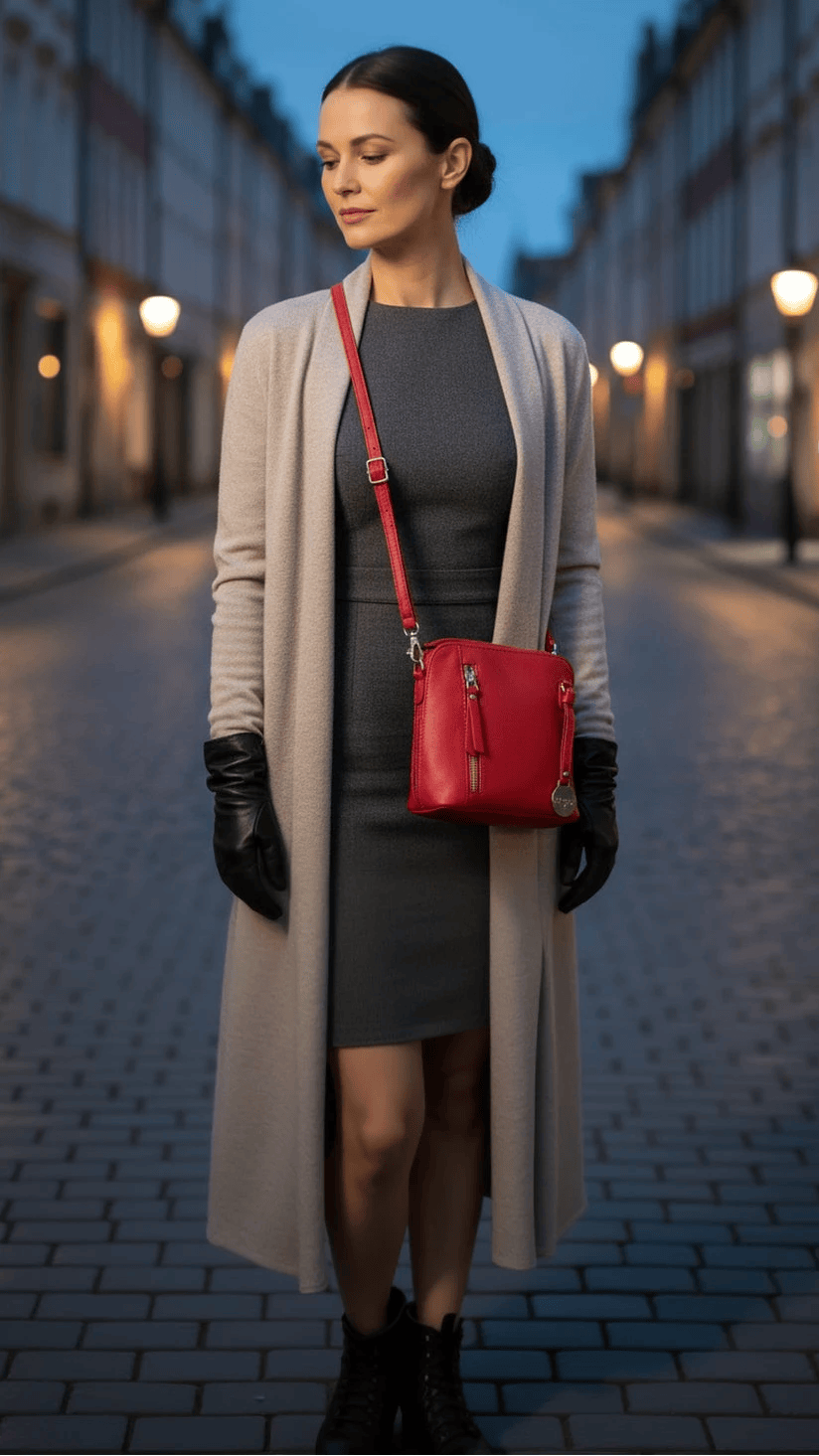 Style Panda er tasken, du måske ikke vidste, du manglede – og som du aldrig vil undvære igen. Denne fede skuldertaske i rødt kvalitetslæder er perfekt til bylivet, festivaler, ferier og til andre af livets små og store situationer, hvor både stil og funktion er uundværlige.