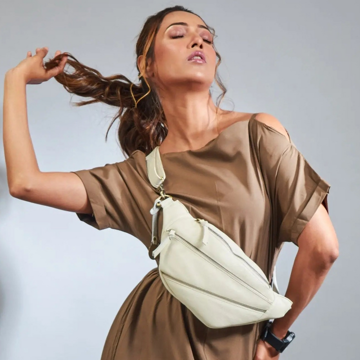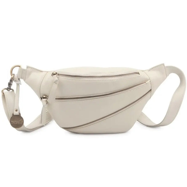 Style Ghita i råhvid læder: Flot, cool bumbag i mellemstørrelse m. flot lynlåsdetalje
