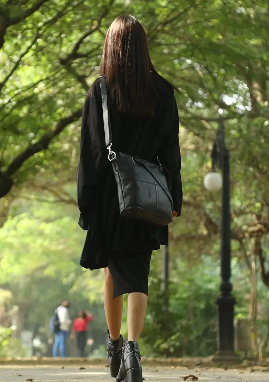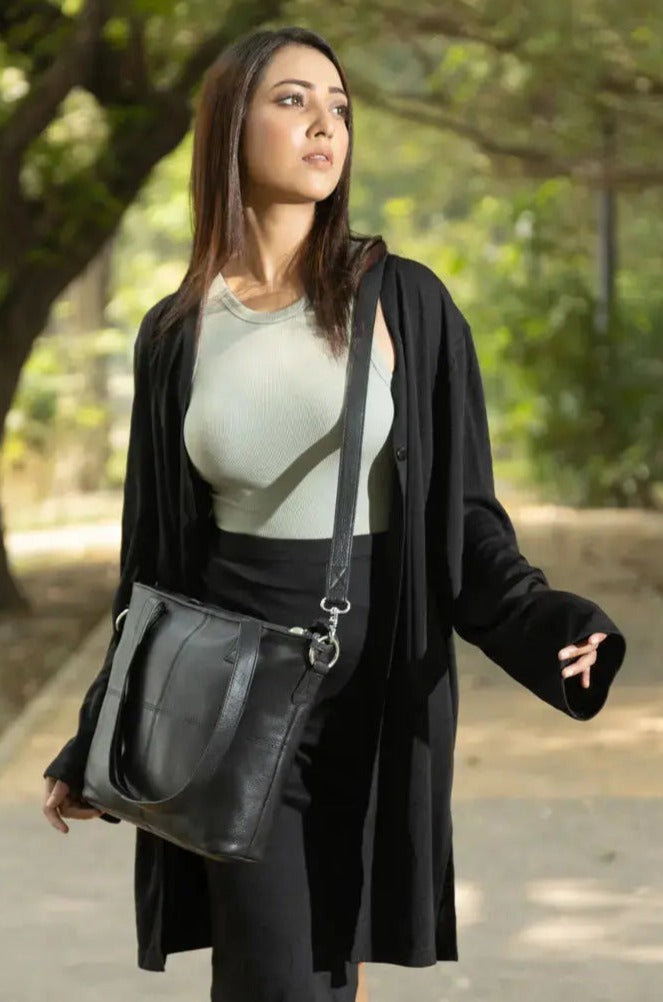 BEMÆRK: Dette er en kollektionsprøve af style Nandi, en skøn hånd-, skulder, og crossbodytaske i kraftigt, sort læder. Kollektionsprøven fremstår i perfekt stand uden fejl. Der er kun ét stk. kollektionsprøve i sort