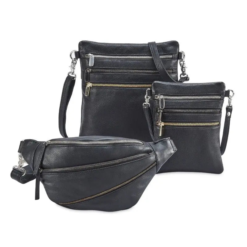 Style Ganges i sort. (kun få stk. på lager). Fed skulder- og crossbody lædertaske med flotte lynlåse i tre farver